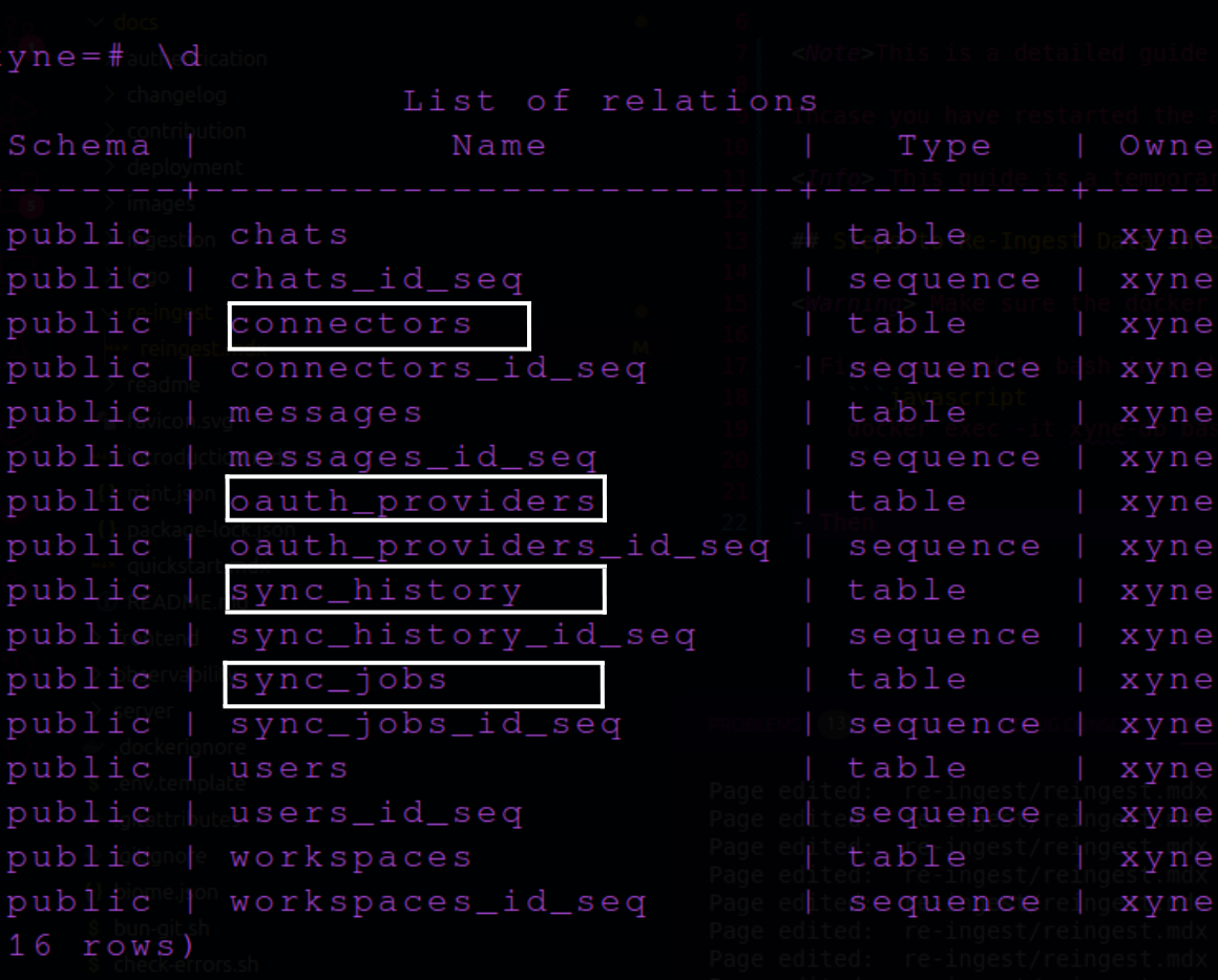 connectorsandoauth_providers,sync_jobsand alsosync_history.